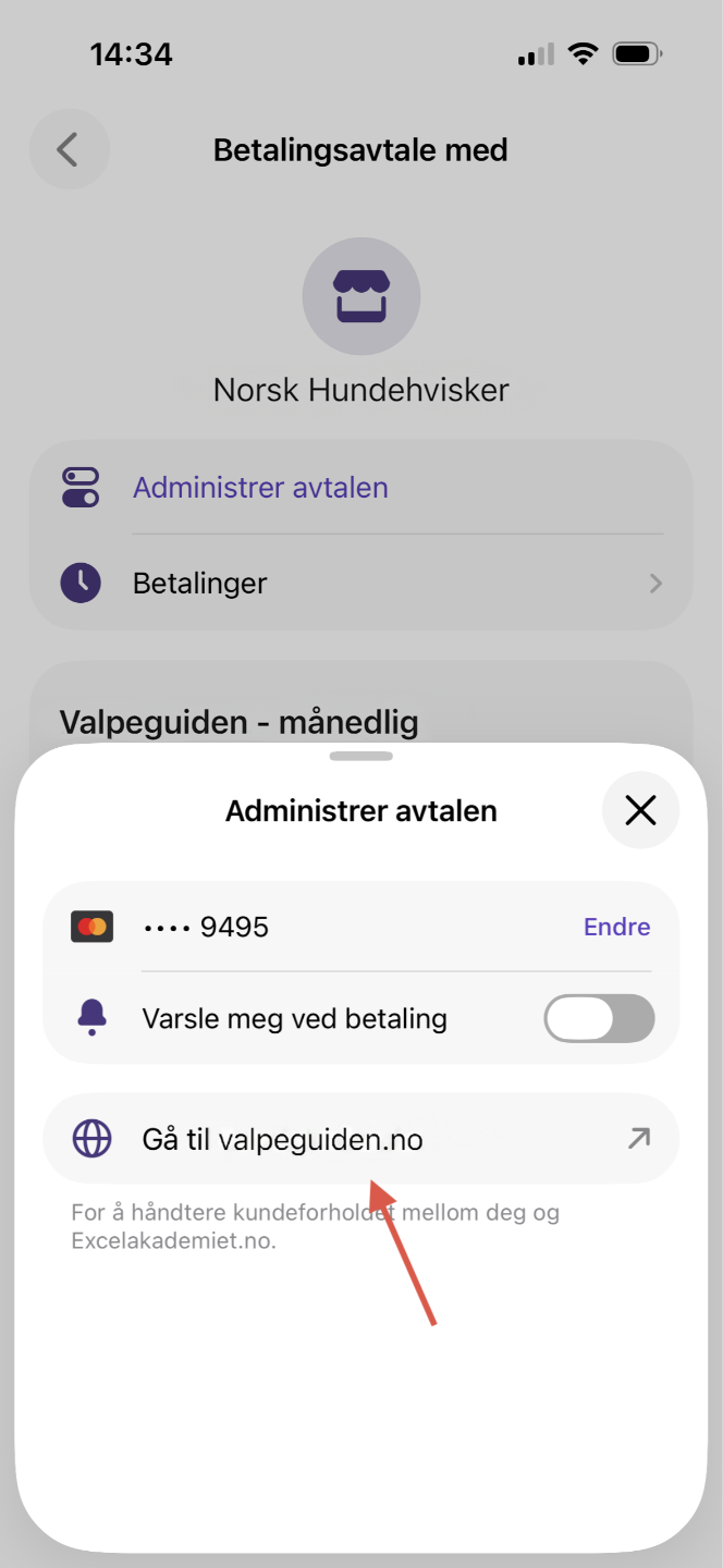 Gå til administrasjon: Trykk på Administrer avtale og velg deretter Gå til Norsk Hundehvisker.