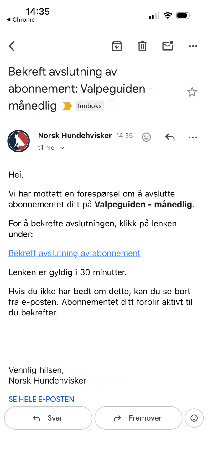 - Åpne e-posten din og klikk på lenken for å verifisere oppsigelsen.